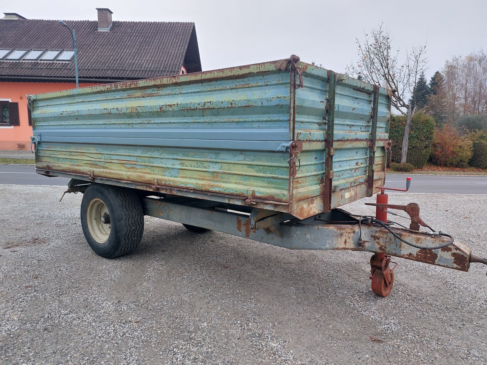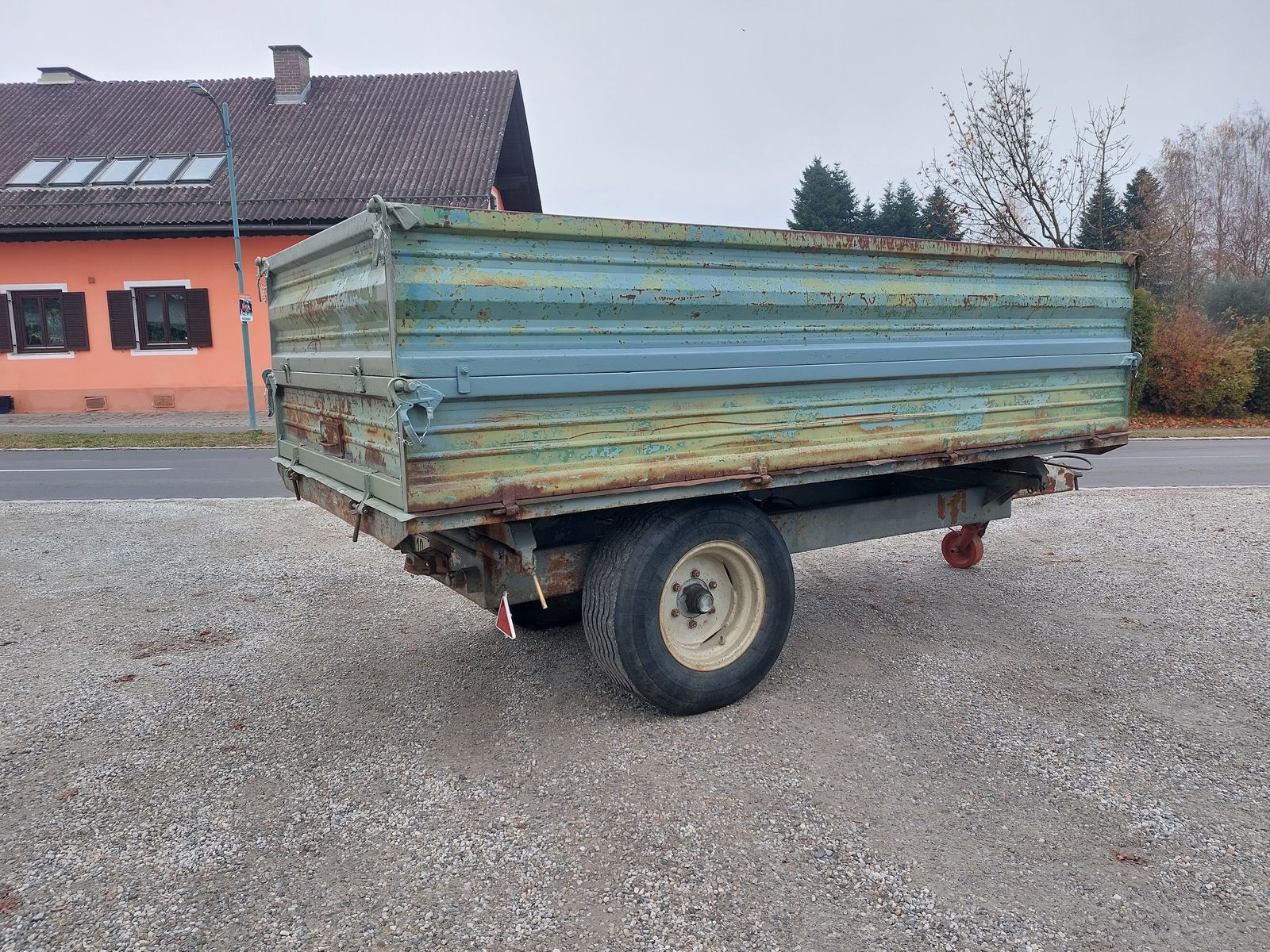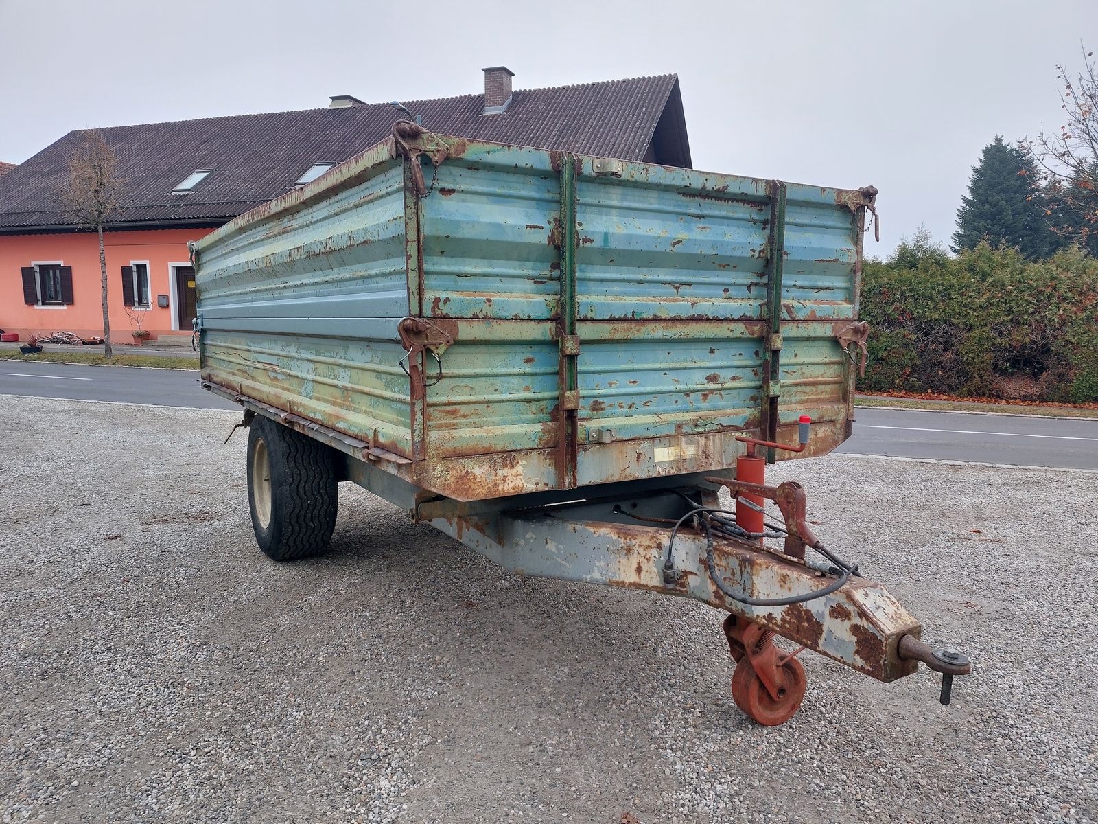 Mazuheli Einachs Dreiseitenkipper Type T 5, 5,50 Nutzlast, durchgehender massiver verwindungsfreier Stahlprofil Grundrahmen in C - Ausführung höhen- verstellbare geschraubte Zugdeichsel, mechanische Umsteck- Handbremse, starkes höhenverstellbares und klappbares Stützrad, Breifung 325 / 65 - R 18 mit 16 Ply Rating, starker hartverchromter Kipperzylinder, verwindungsfreier Kipperrahmen, Plateaugröße 3,80 m x 1,90 m x 0,90 m, rückwärtige Pendelbordwand, Aufsatzwände in Stahlausführung, hintere Anhänge Vorrichtung, Lichtanlage, einsatzbereiter und starker Kipper, zul. Gesamt Gewicht 7.200 kg