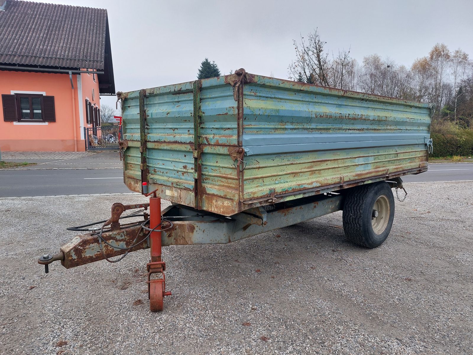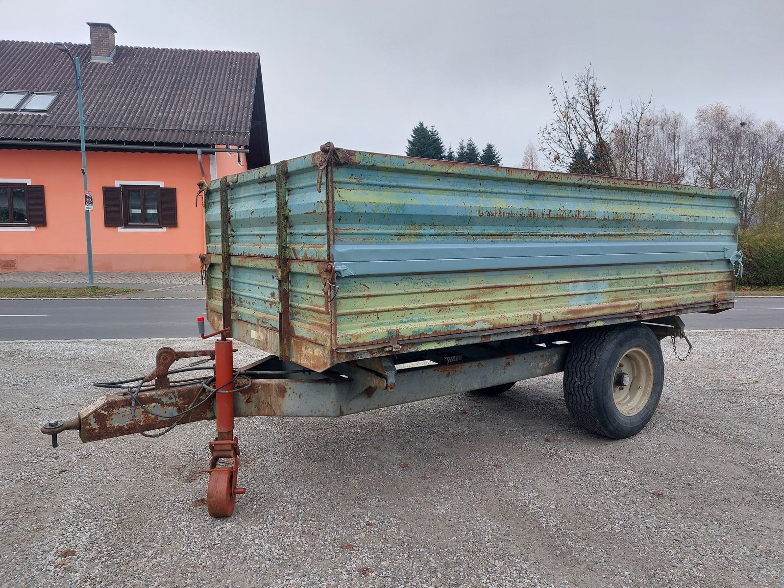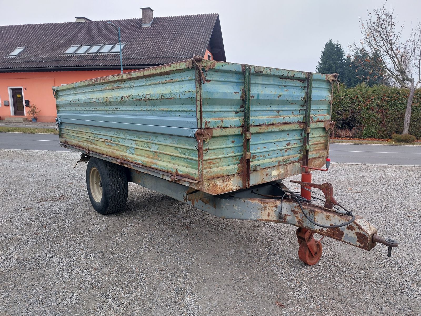 Mazuheli Einachs Dreiseitenkipper Type T 5, 5,50 Nutzlast, durchgehender massiver verwindungsfreier Stahlprofil Grundrahmen in C - Ausführung höhen- verstellbare geschraubte Zugdeichsel, mechanische Umsteck- Handbremse, starkes höhenverstellbares und klappbares Stützrad, Breifung 325 / 65 - R 18 mit 16 Ply Rating, starker hartverchromter Kipperzylinder, verwindungsfreier Kipperrahmen, Plateaugröße 3,80 m x 1,90 m x 0,90 m, rückwärtige Pendelbordwand, Aufsatzwände in Stahlausführung, hintere Anhänge Vorrichtung, Lichtanlage, einsatzbereiter und starker Kipper, zul. Gesamt Gewicht 7.200 kg